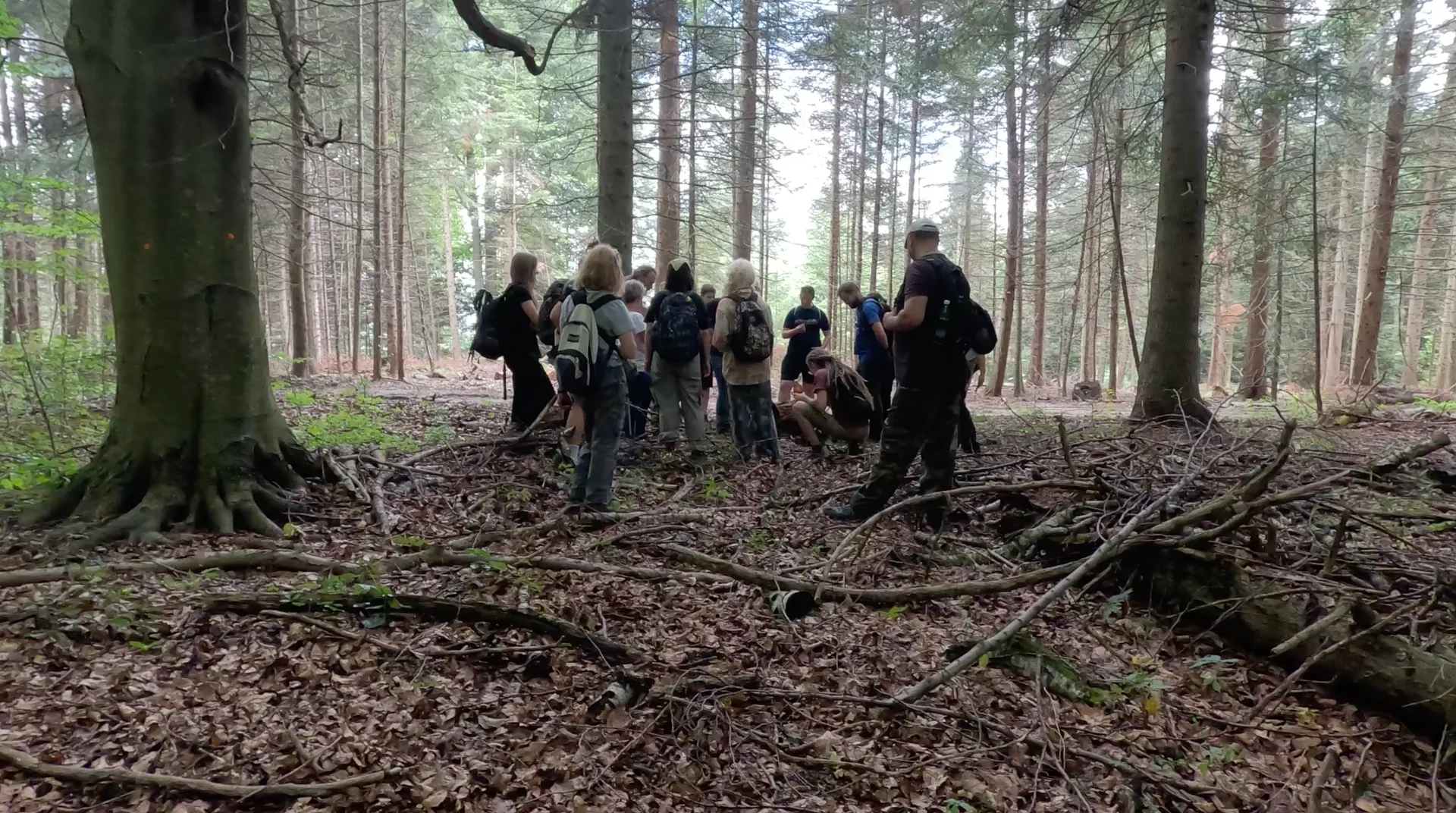 The activity of the Dzikie Karpaty (eng. Wild Carpathians Initiative) consists of monitoring logging plans in the area of the Carpathian forests. People living both locally and in distant parts of the country meet here to physically check tree markings (bright orange dots indicate that a tree is designated for felling), as well as the actions of foresters. Their actions are interventionist: first, they request a list of planned works on an annual basis, then they monitor these areas, checking whether the actual state matches the description on maps and in documents. Very often, what in foresters’ documents is marked as a managed forest in fact contains tree stands of monumental size. The initiative conducts research and then reports irregularities to the foresters. If, despite this, dots appear on trees of monumental size, a struggle for their survival begins, involving offices and the media. As a last resort, members of the group use their own bodies to defend the trees. The level of this determination is an inspiration to me.